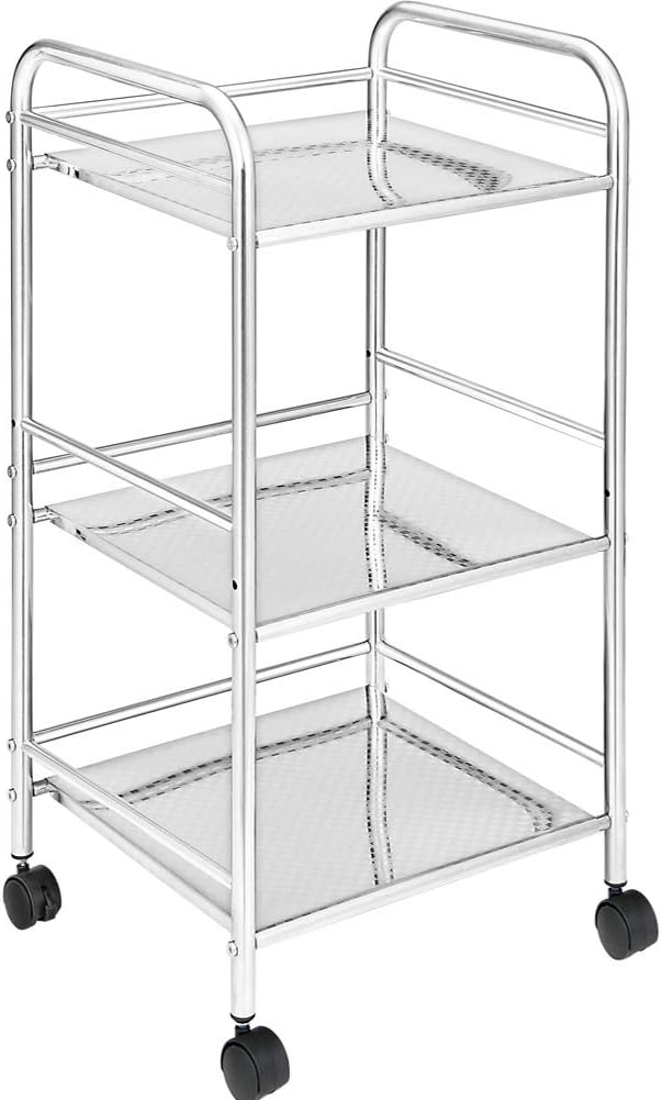 Chromuotas plieninis vezimelis vonios kambariui, virtuvei, kirpejui ar kosmetologui, 4 pasukami ratai, 3 lentynos, matmenys 40 x 35 x 75 cm, daugiafunkcis vezimelis 3 lygiai (plienas)
